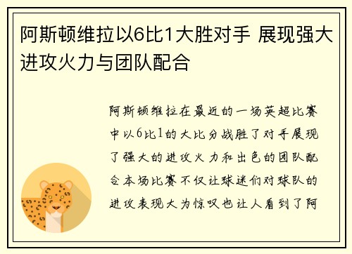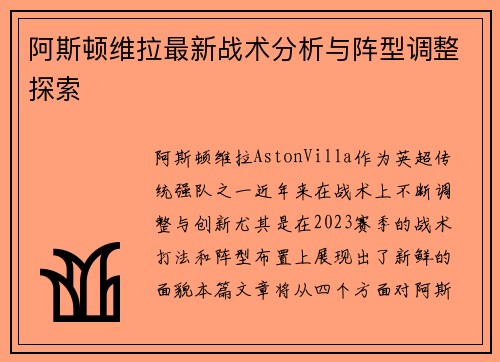 阿斯顿维拉,这支历史悠久的英超球队,近年来在稳步提升球队竞争力的过程中展现出了强劲的势头,逐步挑战着英超的顶级强队,并力求在英超赛场上实现新突破。从管理层的稳定性到阵容深度的提升,再到战术打法的演变和球员引援的精准,阿斯顿维拉在多个层面做出了令人瞩目的努力。本文将从四个方面详细探讨阿斯顿维拉如何通过...